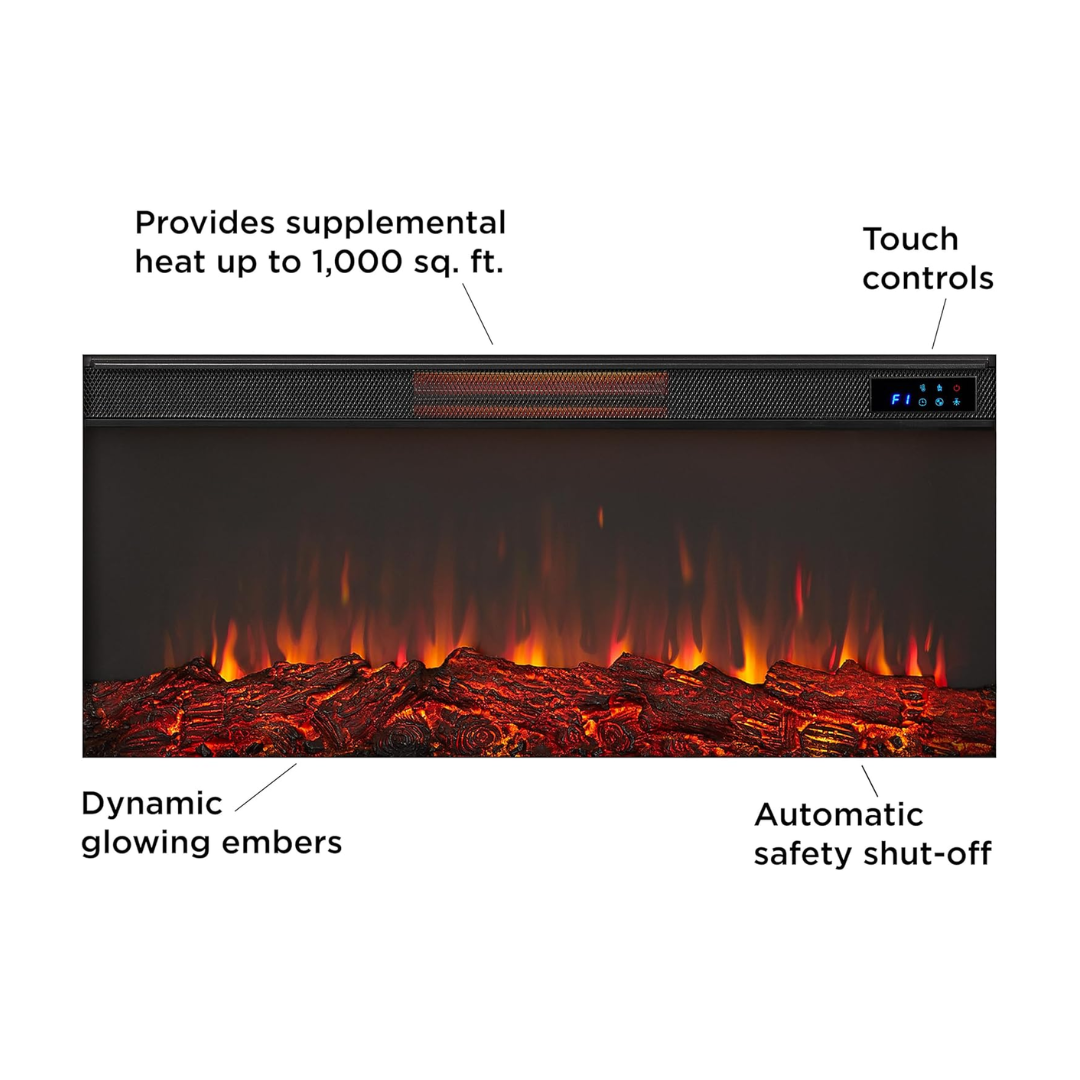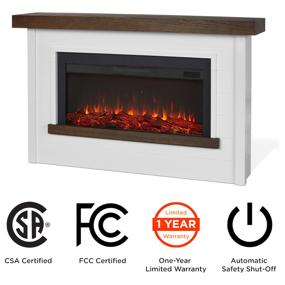 Add warmth and style to your living space with this elegant widescreen electric fireplace. Its realistic LED flames offer six color options and five brightness levels, creating a cozy glow without the need for vents or chimneys. Perfect for rooms up to 1,000 sq. ft., it features adjustable thermostat settings, a safety shut-off, and a timer for effortless comfort. The matte, plaster-inspired surround and real wood mantel bring a sophisticated touch to any modern home or office.