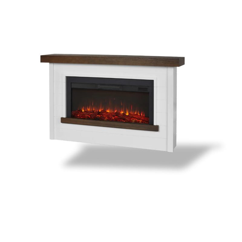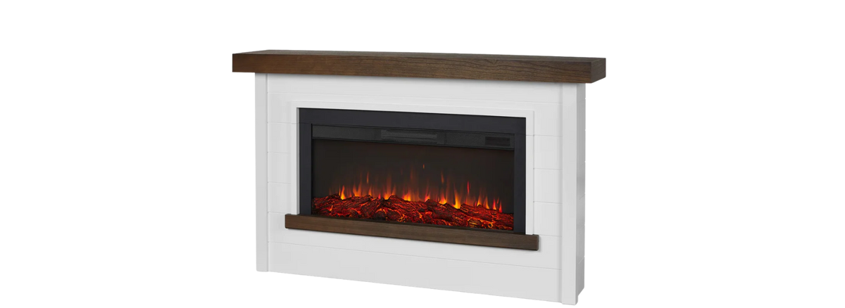 Furniture-quality craftsmanship Clean shiplap lines with natural wood-grain texture and a spacious mantel for styling. This isn't an appliance—it's a focal point.