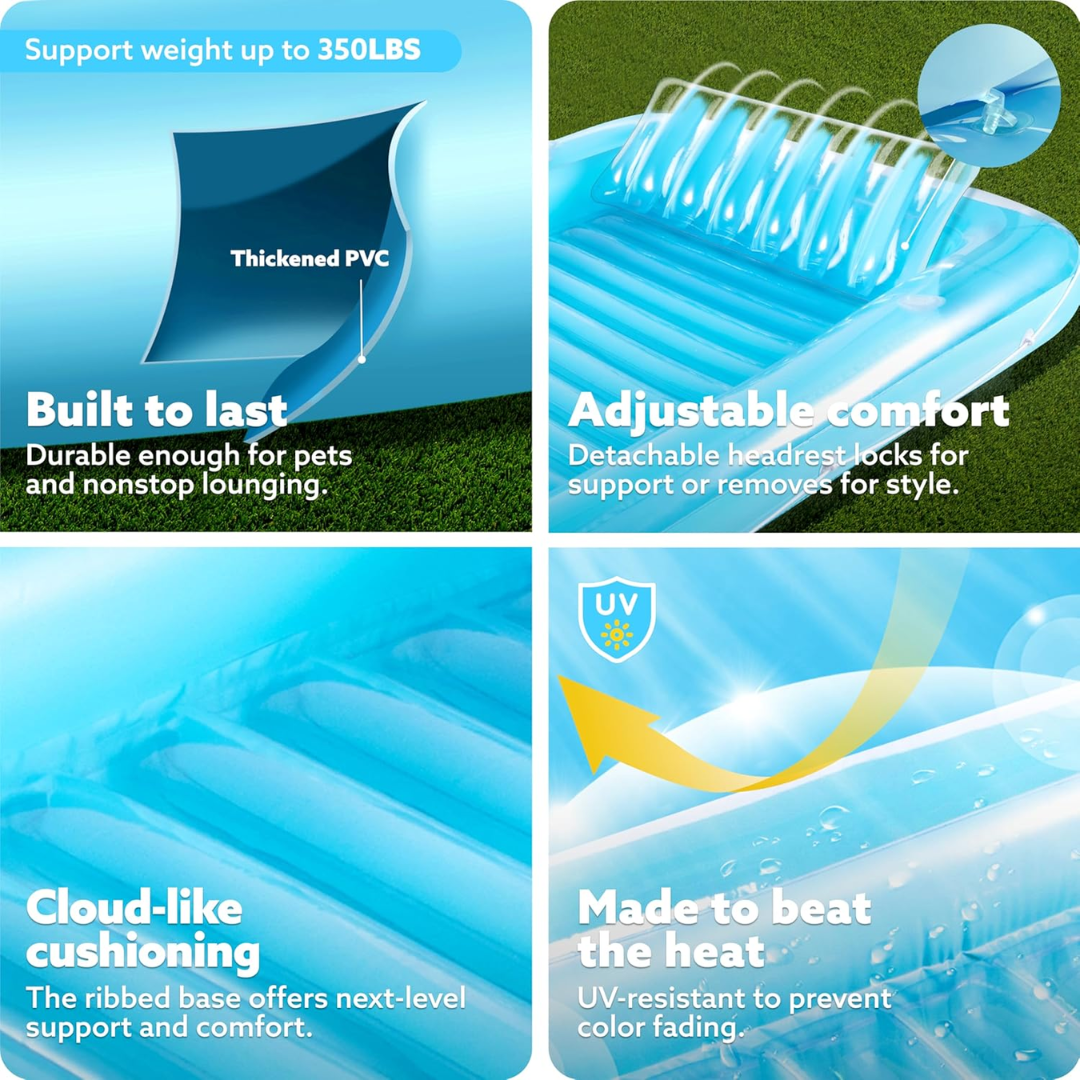 Turn any sunny day into a luxurious escape with this oversized inflatable pool lounger—designed for comfort, convenience, and sun-soaked bliss.