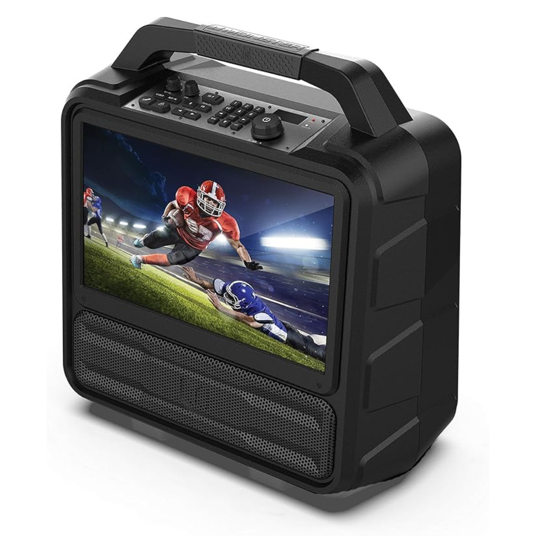 Powerful 60W audio system with Bluetooth, FM radio, and mic input for PA or karaoke use